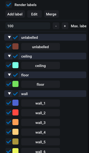 Las etiquetas te permiten asignar identificadores visuales y semánticos a conjuntos de puntos seleccionados. Son muy útiles para clasificar estructuras, marcar áreas de interés o etiquetar resultados de segmentación.